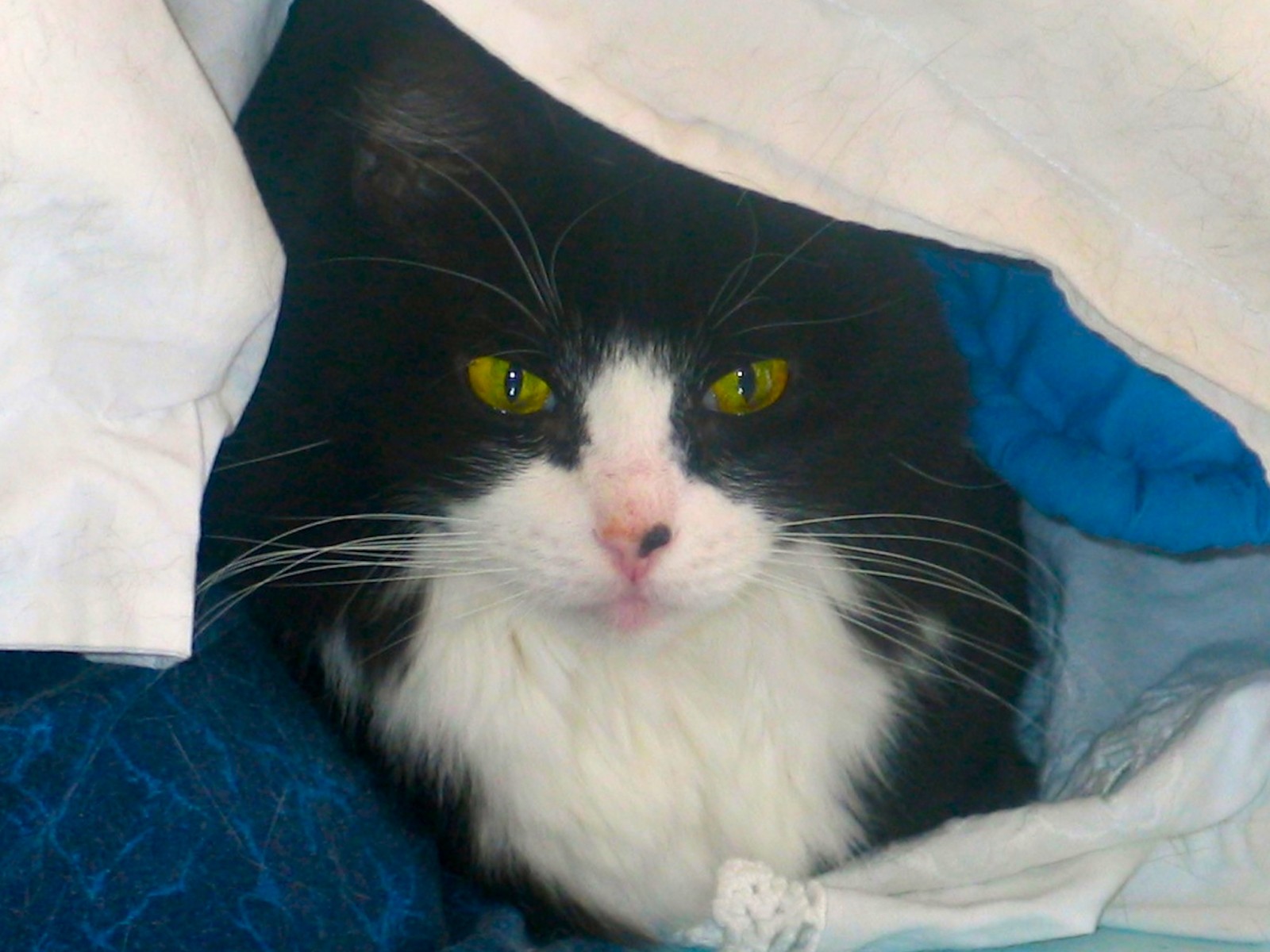 Cat Snuggled Wallpaper spotlights my lovable cat. She enjoys cuddling on “her” bed between all the pillows. She also loves to snuggle. But her all time favorite thing is to get “pets”. She goes back and forth between “mommy” and “daddy” to be petted!! She isn’t too spoiled!!!