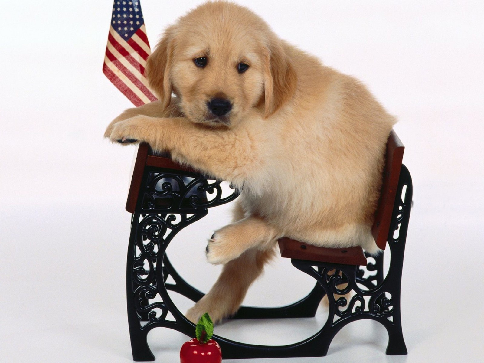 Labrador School Wallpaper shows this cute labrador puppy “sitting” at a school desk. He looks bored with it all. Bet he can’t wait for recess to eat the apple!