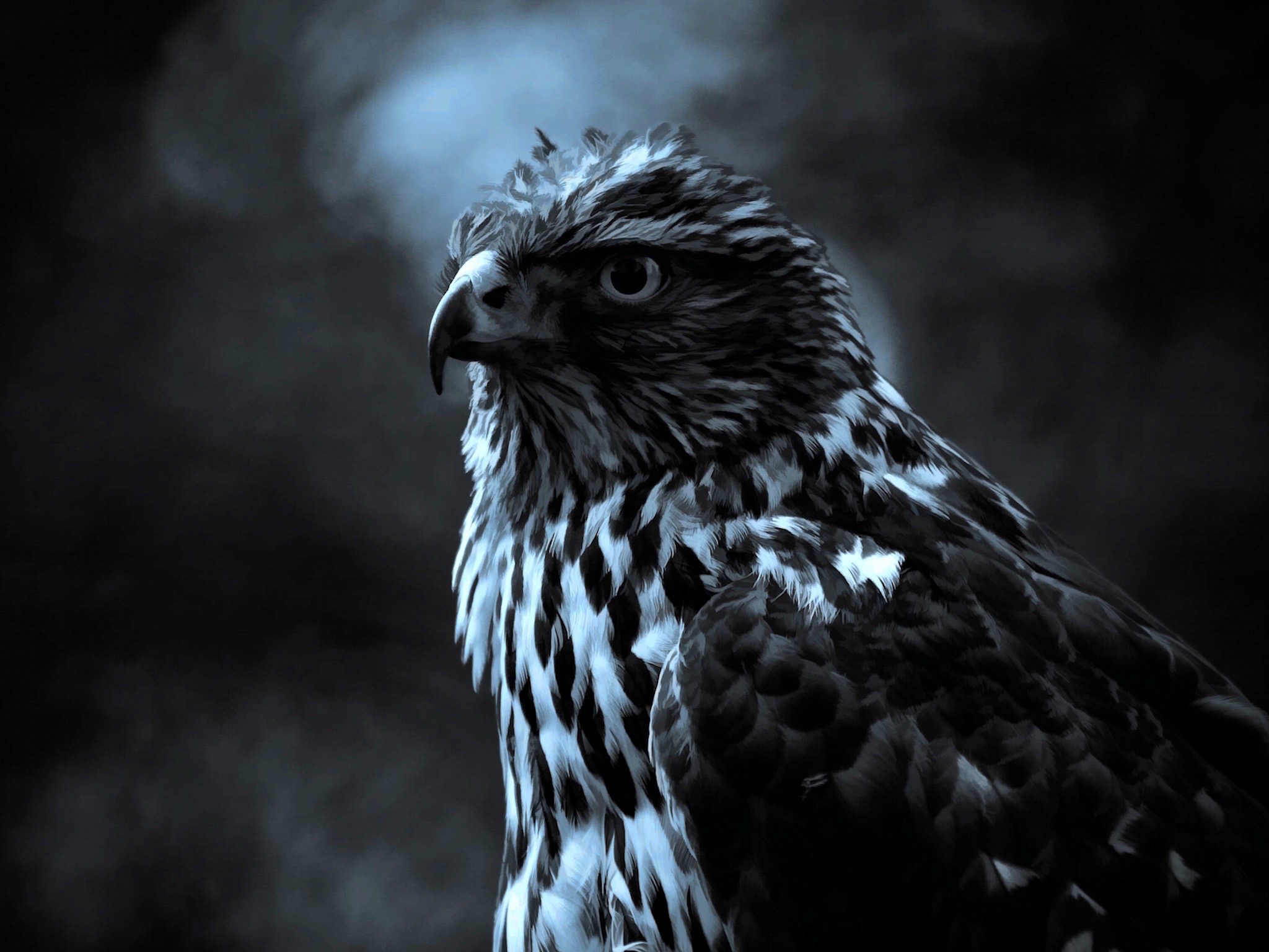 Hawk Painting Wallpaper shows a predatory bird. This bird has keen vision. It can see eight times more than a human can. A hawk’s eyes are positioned on the side of the head. This permits it to see almost all around. Hawks prefer to hunt before nightfall when daylight dies down. It is interesting that the artist painted this picture without color. Hawks can see in color!