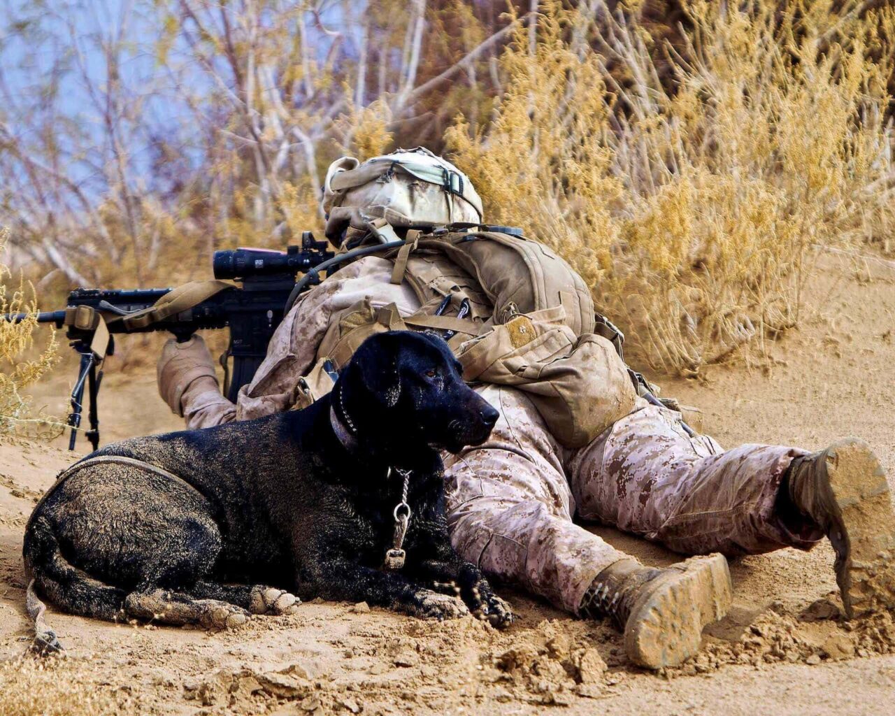 Veterans best friend wallpaper is of U.S. Marine Corps Lance Cpl. Brandon Mann with his military dog Ty. Corporal Alfred V. Lopez, U.S. Marine Corps (www.defense.gov) [Public domain], via Wikimedia Commons captured this awesome image. Lopez snapped this picture in Helmand province, Afghanistan, on Feb. 17, 2012. Corporal Mann and Ty, an explosive device detection dog, are paid tribute for their service in the military on The US holiday, Veteran’s Day!